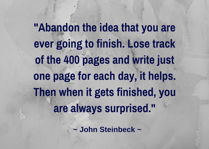 Meanwhile, I thought Steinbeck was quoted as saying that finishing a novel is like having a death in the family. I decided to look for that quote this morning, but found the other one instead. It’s almost like it’s all part of a plan.