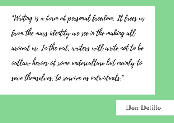 I think there is a lot of truths in this quote from Don Delillo. If writers all thought the same and wrote the same, we would be a sad,sorry group—for who would bother to read our thoughts or stories? Thank goodness we are individuals and have our own creative ways of seeing things. . . . .