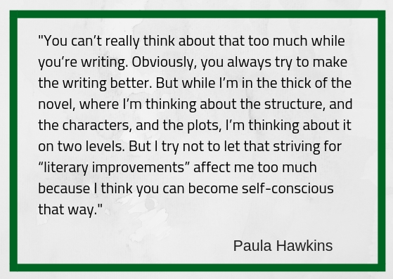 Paula Hawkins, answering the question, Do you think of Into the Water as a more literary effort than The Girl on the Train?