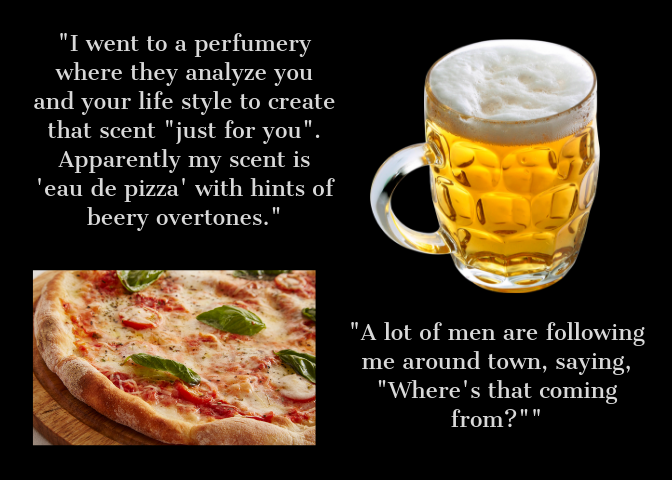 Pretty sure mine would be “eau de peanut butter” with hints of coffee/winey overtones! 😉