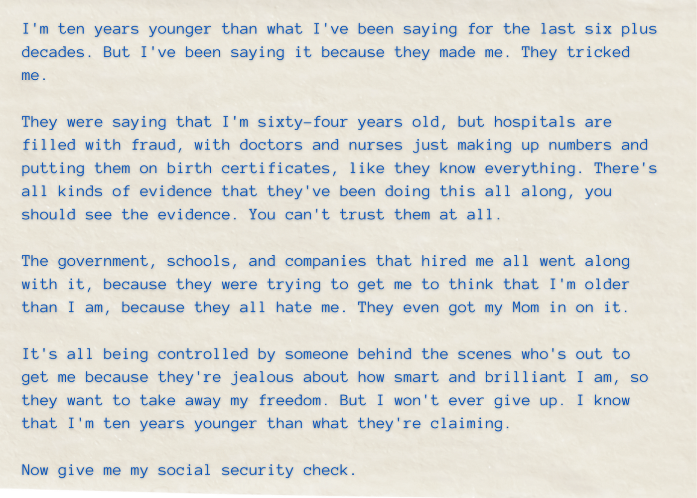 The one thing you forgot … “Everybody knows …” Good imitation, Michael!!! I almost forgot what I was reading and thought I was seeing a trumpism on Twitter!