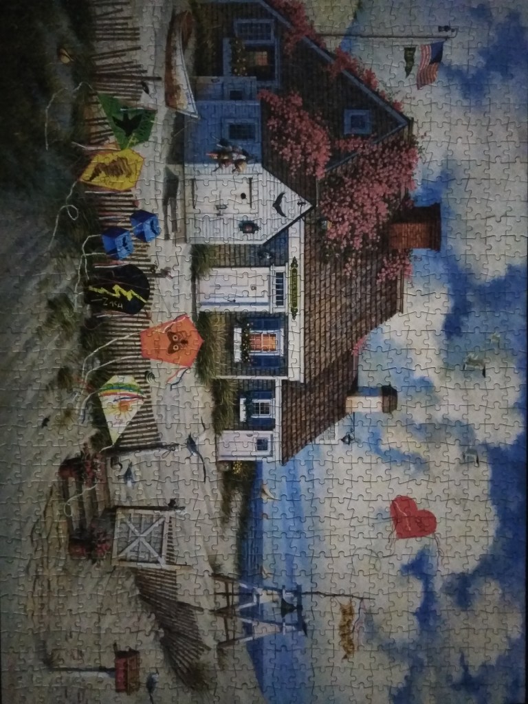 Completed another 1,000 piece jigsaw puzzle last night. It was a fun one, except the clouds. Took days and several wrong piece placements to get that sky finished.