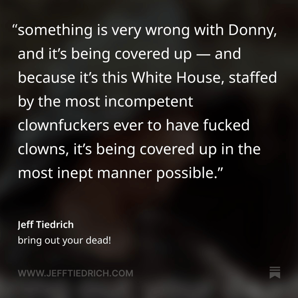 Trump is also trying to distract We the People from things like Trump’s failing health, his flailing efforts to end wars or improve the economy, and his dim chances to win the Nobel Peace Prize. He’s going down fast.