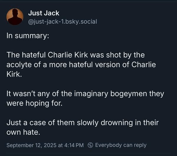 Of course, Trump was eager to blame Kirk’s murder on someone from the left. But guess what? It was another right-winger killing another of their own. No apologies from Trump and others for making wild and biased accusations, of course. Trump lacks the moral fortitude and honesty for anything like that.
