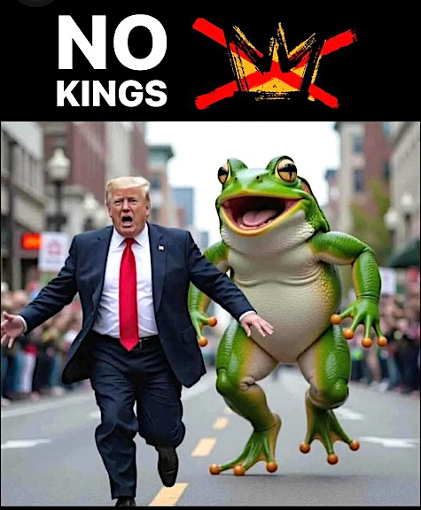 It’s Satyrda, Oct 18, 2025, also known as No Kings II. This is a day when We the People come together to remind Trump, Project 2025, the GOP, and the rest of the world that the United States rejected kings ruling them twice before, in 1776, and then again when the idea was floated before G. Washington. We didn’t want kings then; we don’t want them in 2025.