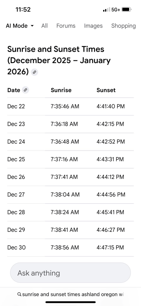 I hope your holidays were and are pleasant for you. Hope, too, that whatever troubles 2025 brought to you drop away and that 2026 is less problematic and troublesome for all of us. Fingers crossed. At least we’re going to be seeing longer periods of daylight up north now, having crossed the solstice boundary.