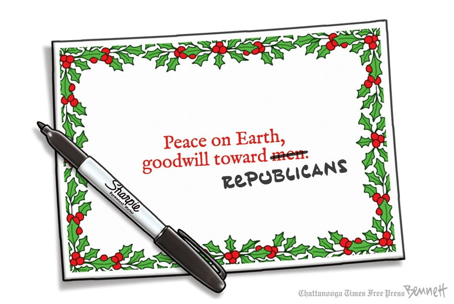 Nice summary of Trump’s Own Party’s attitude, a Clay Bennett cartoon via Daily Kos.