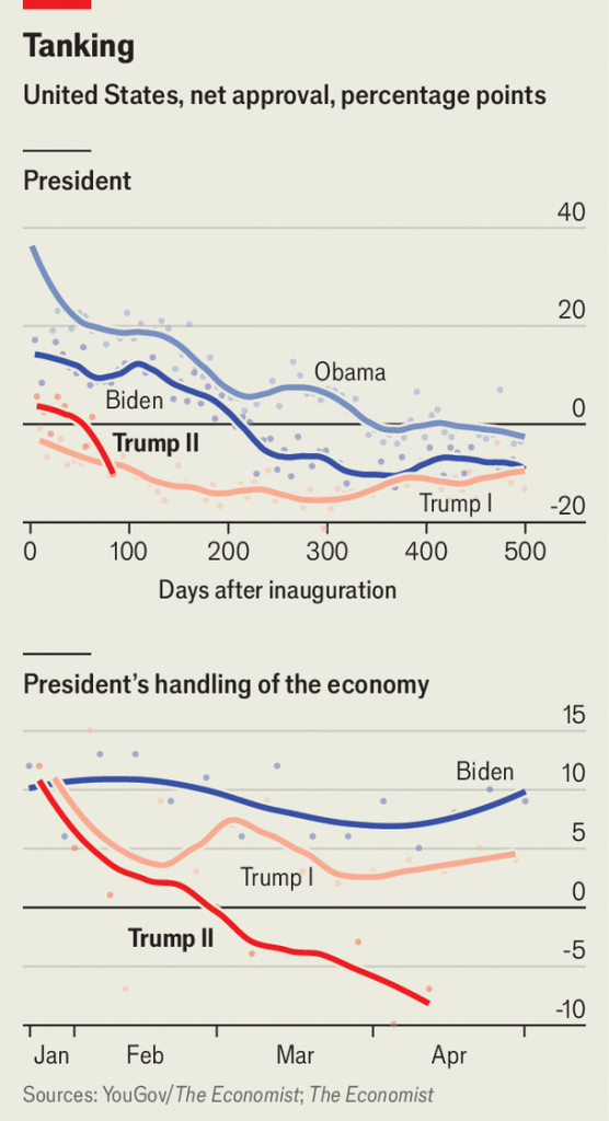 The machine behind Death Donny is grinding on, though, dragging down everything known as the United States for the last century except the name and the flag. Wouldn’t put it past Trump and his regime, though, for him to announce that they’re changing the flag and dropping the stars for blue states. Just the dimwitted, smirking, asinine behavior that they consistently show, crowing about how they love the nation, how patriotic they are, how they’re doing things in the name of saving the nation or keep it secure. It’s all garbage talk, and polls show people aren’t buying it much these days.