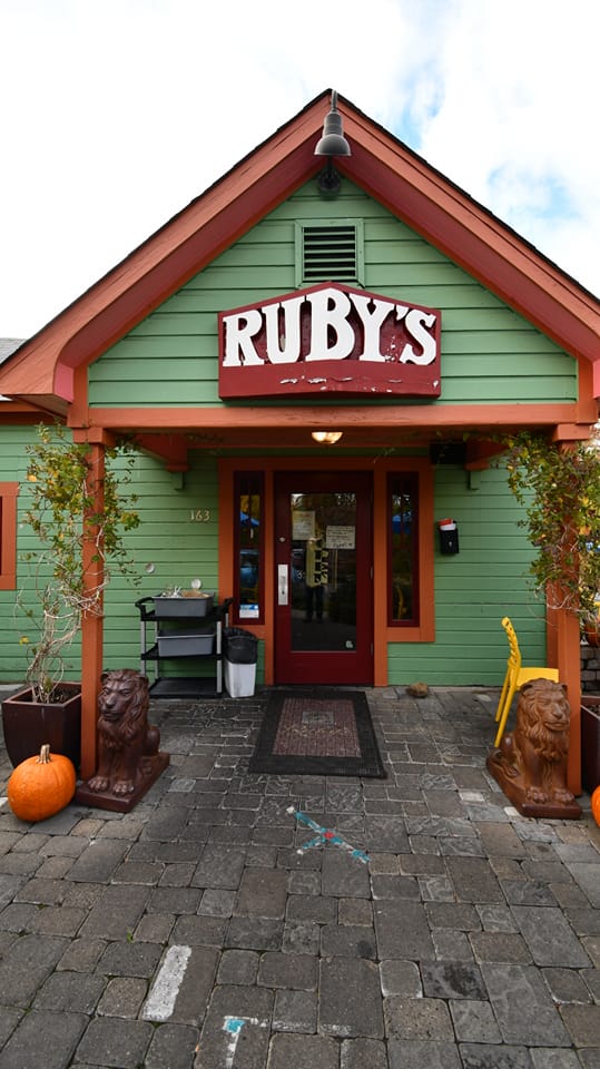 The best burritos in Ashland, in our opinion, is offered by Ruby’s of Ashland. They’re downtown, on Pioneer, just a few blocks from the plaza, Lithia Park, and Oregon Shakespeare Festival’s theaters. Good location, yeah? Yeah. Tres popular place. Next to it is a lovely tap house, Gil’s. Cold brews, you know? Yeah, you know.