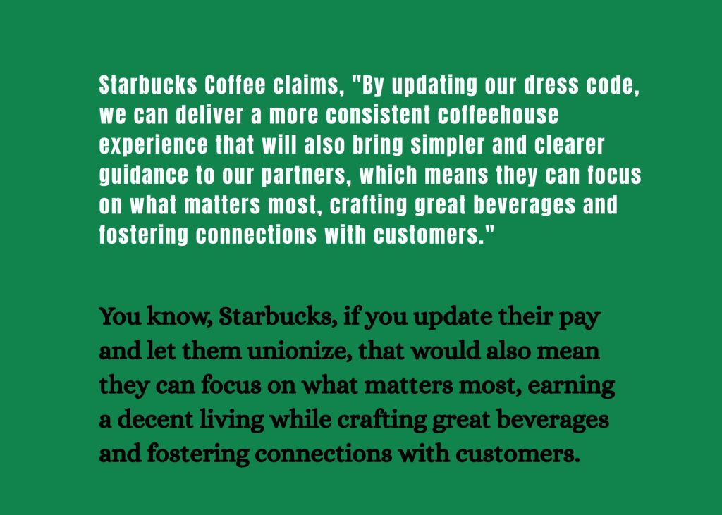 Yes, Starbucks is a corporation and has the right to establish a dress code. But don’t try to justify it with such grade school logic.