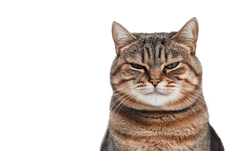 The orange floof lifts his chin, gives her one more long look, and walks away.