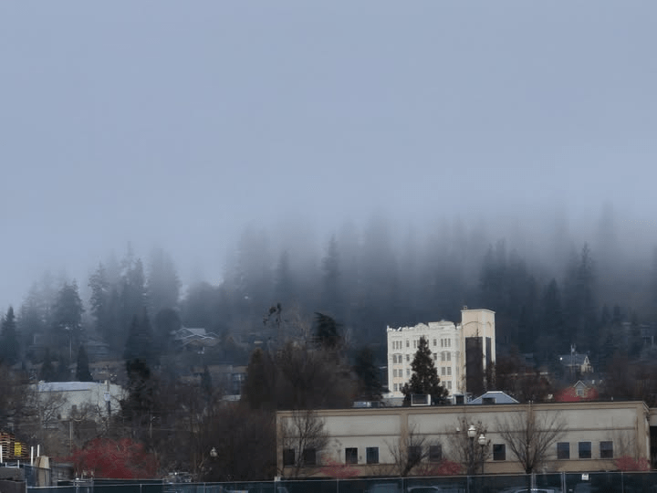 Photo of downtown Ashland, Oregon, taken in the afternoon, 12/11/2025.