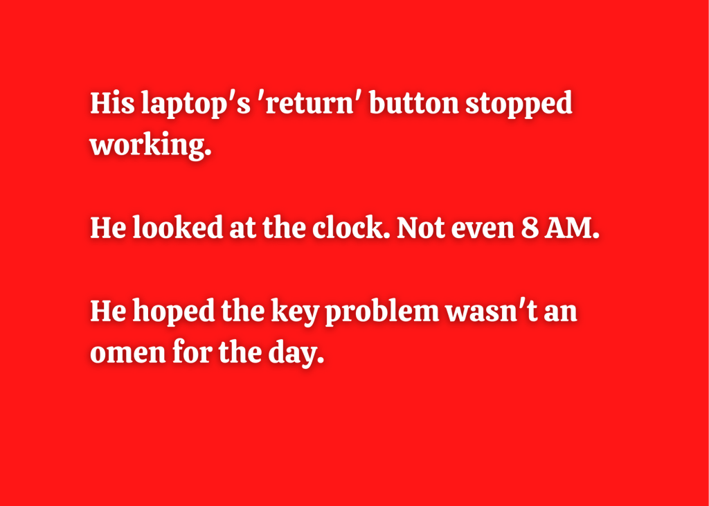 There were twelve of us. We were taking a two-day class. The was the second day. The class was being held in a business annex in an airport. As part of the class, we’d been writing a paper about what we learned. Everyone else was leaving. I was still writing my paper.