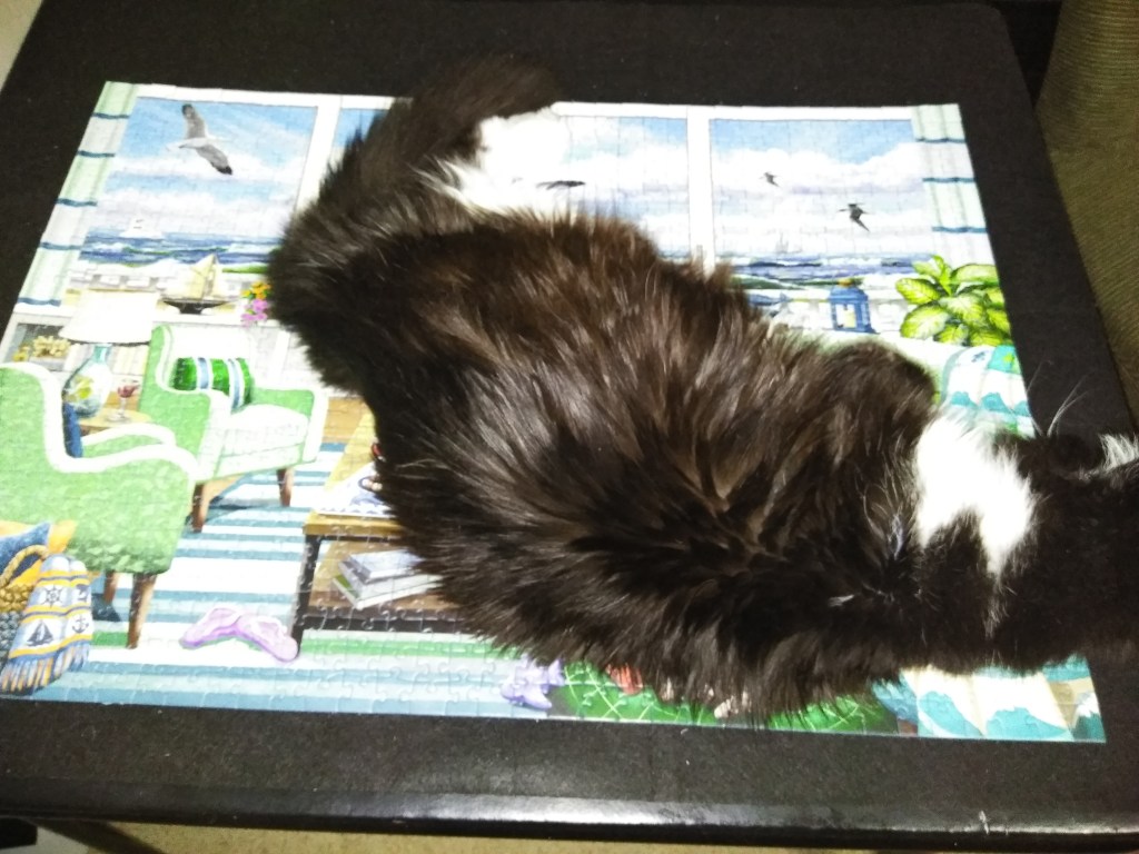 Isn’t it funny how Tucker chose to sleep on the dog and table?