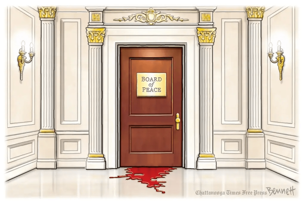 After Dippy Donny’s regime shuttered the U.S. Institute of Peace earlier in 2025 and left the building empty and the work undone, the regime now renamed the building the Donald J. Trump U.S. Institute of Peace. Perfectly droll of this administration, who are all pretense and no substance when it comes to peace and finding peace. Trump always believes he can bully others into peace. “Take our deal, or else.” He claims he’s ended 60 billion wars, including several that ended before his father was born. (Yeah, that last sentence is some hyperbole, right there.)