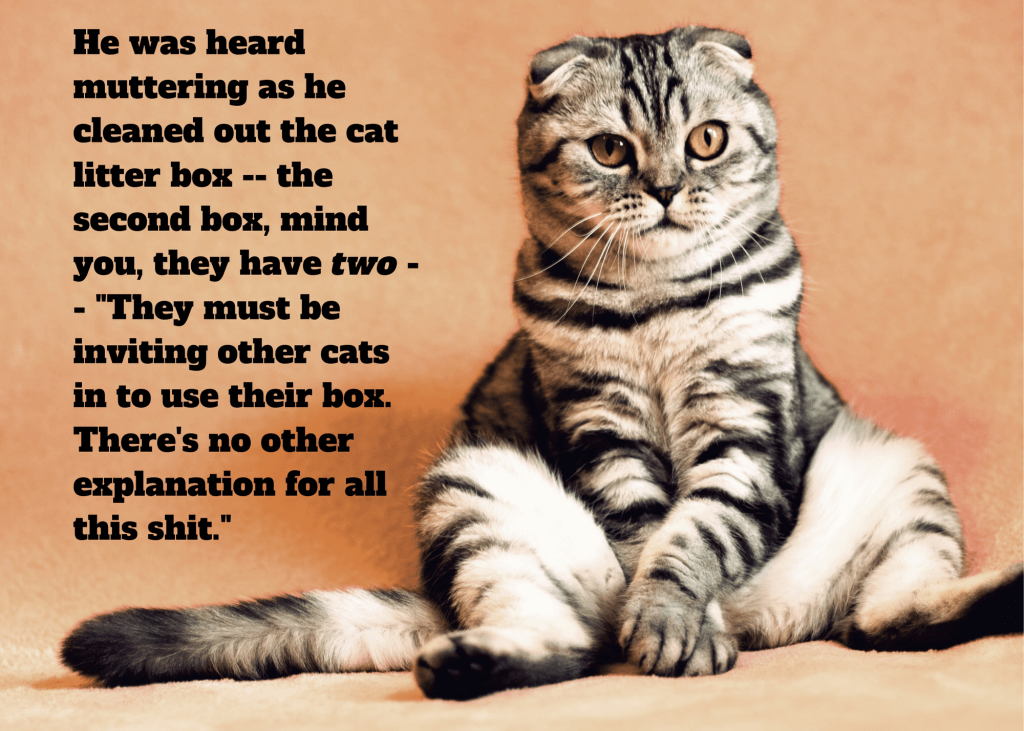 I answer the first question, yes, you’re fucking nuts, but that’s not a problem, per se, and I answer the second one, but if I’m writing for me, shouldn’t I like what I’m writing? This prompts some internal dialogue between me, myself, and I, and the suggestion that maybe I do secretly like it, but I’m worried about how readers might react.